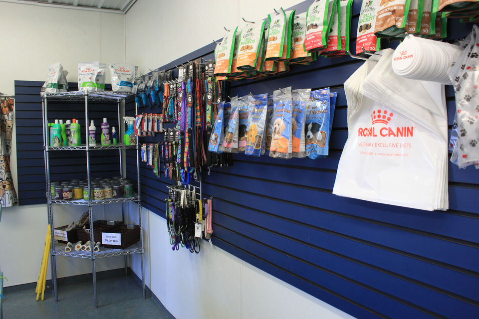 Head over to our retail store, located by our Boarding and Daycare front desk, to find leashes, collars, treats, food, grooming products, and more for your pet!